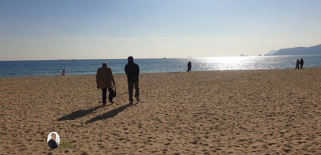 무명초를 불러주신( 가방을 드신 분) 분이 식사 후 해운대 겨울 백사장을 거닐어봅니다.