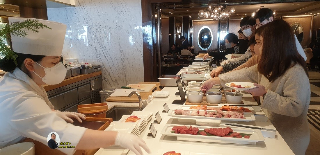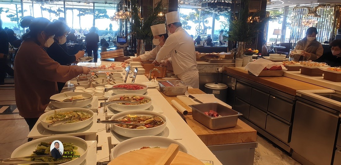 연말이라 그런지, 파라다이스호텔, 뷔페장에 손님이 가득합니다.